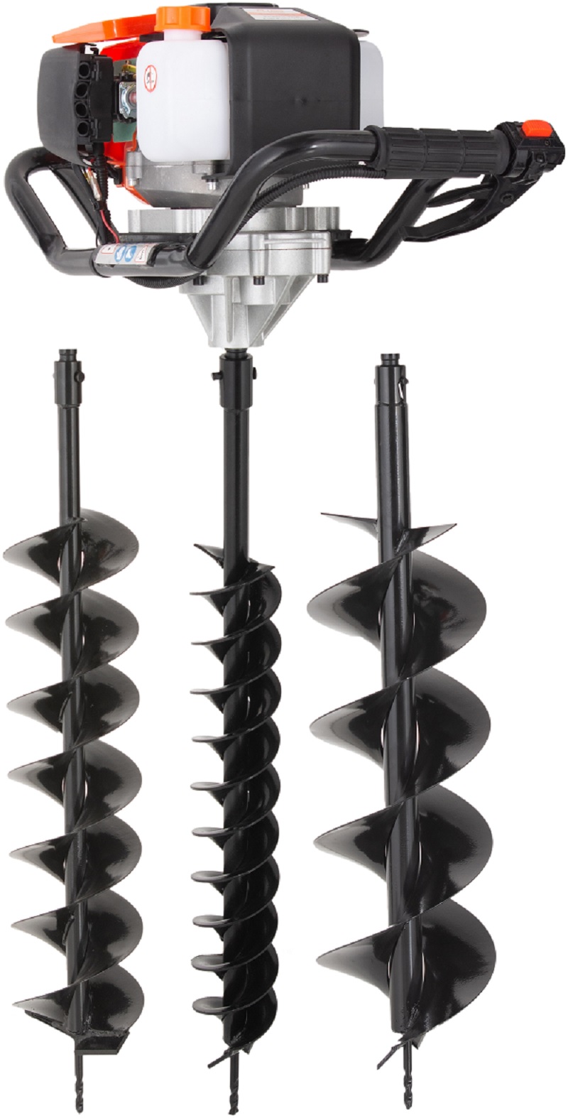 INCLUYE 3 BROCAS DE 10CM / 4″, 15CM / 6″ Y 20CM / 8″ DE DIAMETRO CON 100CM DE LARGO CADA UNA